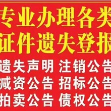 我司主要業(yè)務(wù)有:遺失聲明、注銷公告、減資公告、公告啟示、增資減資、開業(yè)公告、變更分立、吸收合并、轉(zhuǎn)讓公告、施工公告、招標(biāo)公告、公告、解除公告、致歉公告、延期公告、尋人尋物等等